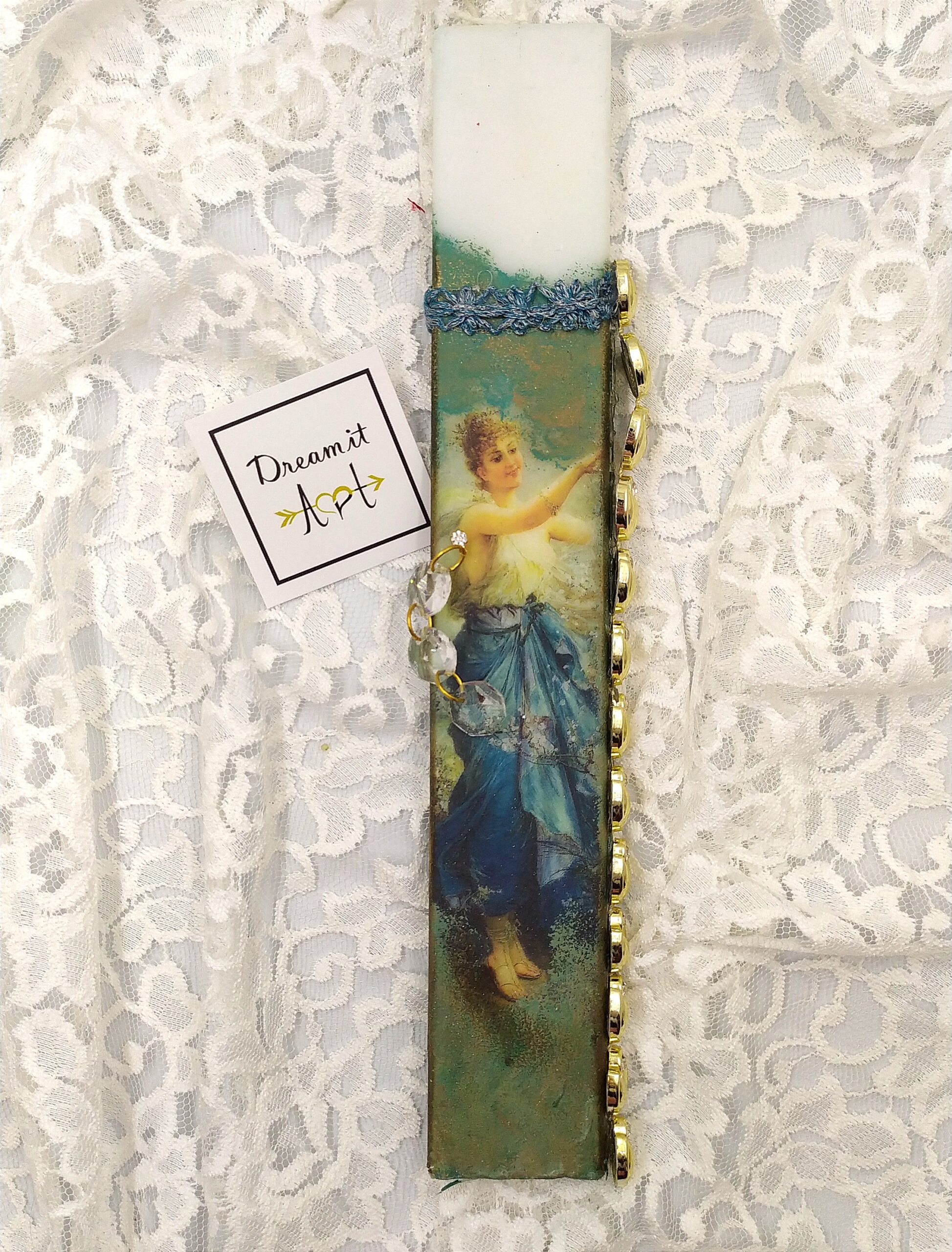 Χειροποίητη λαμπάδα VINTAGE”, χρυσή αλυσίδα με στρας στο πλάι και κρεμαστά κρυσταλλάκια