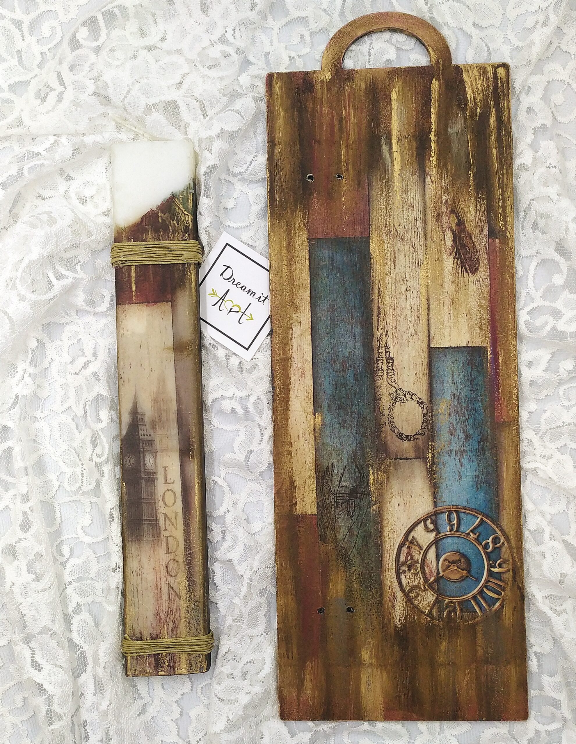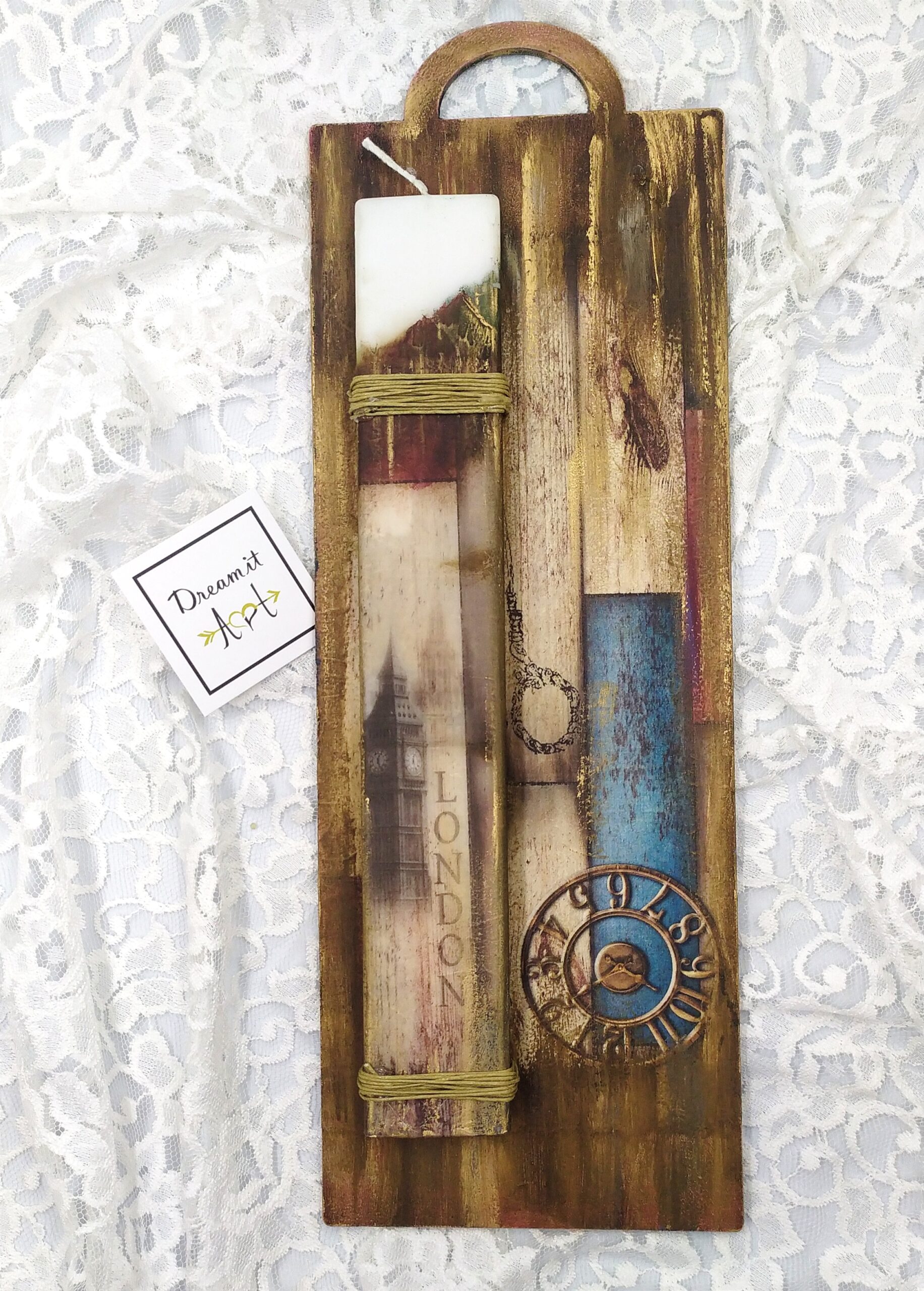 Χειροποίητη λαμπάδα ”LONDON” με ξύλινη πλάτη-καδράκι!